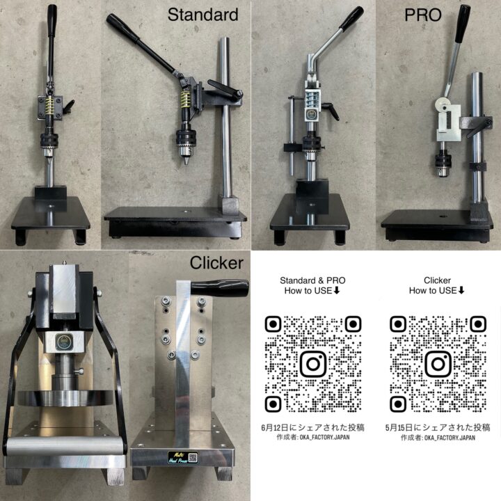 Multi Hand Press【Clicker】(Specially designed to fit OKA Factory's Cutting Board ! ) Includes: Grease gun/ Cutting board size L (Pressure capacity: 2t)