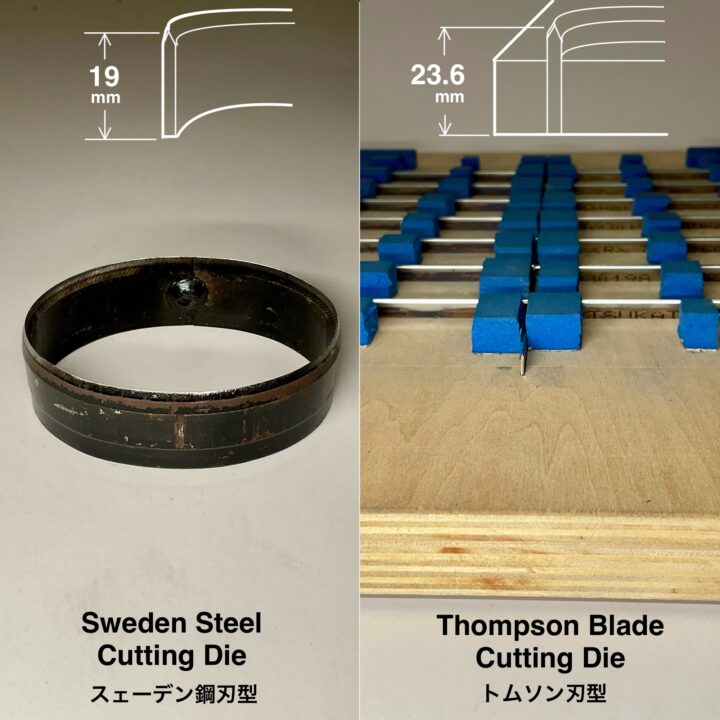 Can be used with Swedish steel cutting die (blade height: 19 mm) and Thomson blade cutting die (blade height: 23.6 mm).