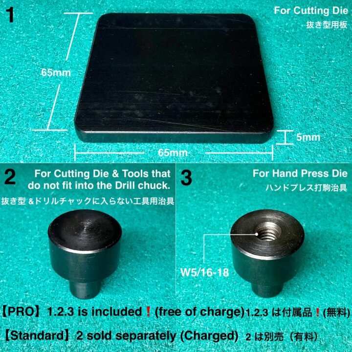 * For Cutting Die & Tools that do not fit into the Drill chuck & For Hand Press Die are sold separately (at cost).